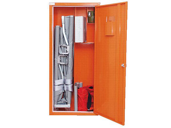 Förvaringsskåpet håller båren dammskyddad och på plats. Med en bestämd placering säkerställs att båren alltid är redo att användas vid en olycka.